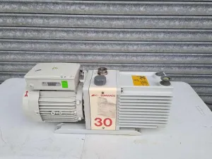This product features the Edwards E2M30 Rotary Vane Pump, a high-performance vacuum pump designed for various laboratory applications requiring reliable and efficient vacuum creation.