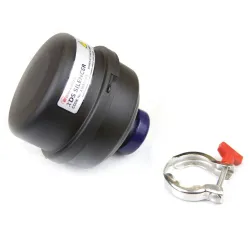 The Edwards Silencer for XDS35i Dry Scroll Pump has two main functions: to reduce exhaust noise during pump down and gas ballast operation as well as to collect and retain tip seal dust as the pump is operated. Exhaust gases exit the exhaust port when the pump is being used to evacuate a process chamber, or when the gas ballast control is being used, or both. The noise level when pumping down rises as the throughput increases and the silencer is used to reduce this noise level. The outer can is made of pressed steel and is split to allow access to the filter elements. The filter element housing is made from Santoprene thermoplastic elastomer. The element itself is polyester. The foam block is manufactured from filter foam.