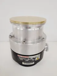This Edwards Turbomolecular Pump, model HP G1946-80001, was sourced from a university laboratory where it was deemed surplus. Although the controller is not available to test the unit, the blades rotate smoothly, indicating it is not seized. The pump is in good cosmetic condition, displaying some signs of usage.