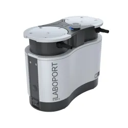 The KNF LABOPORT N 820 G Diaphragm Pump is an exceptional choice for laboratory applications, boasting a chemically resistant, compact design. This oil-free pump ensures pure transferring, evacuation, and compression of gases, thanks to its 100% oil-free operation. It is especially suitable for handling extremely aggressive or corrosive gases and vapors, highlighting its high vapor and condensate compatibility. The pump features manual speed control, allowing users to tailor the pump capacity to specific needs, and an integrated gas ballast valve for enhanced performance. Constructed with PTFE/TFM heads, PTFE-coated diaphragms, and FFPM valves, it ensures durability and reliability in demanding environments.