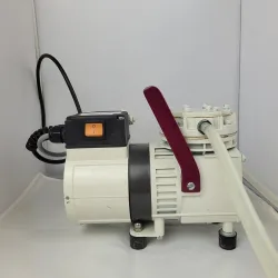 Introducing the KNF Neuberger Diaphragm Pump, a compact, corrosion-resistant unit tailored for general laboratory use. This pump is in full working condition and is prepared for immediate deployment. With its 100% oil-free transfer capability, it allows for the pure evacuation, compression, and transfer of gases. It is designed to handle slightly aggressive or corrosive gases and vapors, making it suitable for diverse laboratory settings. The pump is maintenance-free, environmentally friendly, and ensures a gastight operation with a leakage rate of approximately 6 x 10⁻³ mbar x l/s. The Series N 022 diaphragm pumps are single-head, dry-running pumps engineered for a broad spectrum of laboratory applications.