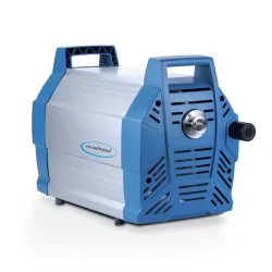 The MD 12 NT is an excellent choice for continuous, oil-free evacuation and pumping of non-aggressive gases, especially for applications in physics and analytics. Due to the very good ultimate vacuum the MD 12 NT is often used as an alternative to rotary vane pumps, for example for vacuum ovens, for very quick and efficient degassing of viscous media, exhaust gas analytics and especially as backing pump for large turbomolecular drag pumps. The particularly high pumping speed enables the usage of bigger vacuum apparatus and with high gas throughput. The pump is extraordinarily silent and exhibits very low vibration making it an excellent choice for sensitive equipment such as electron microscopes. Back diffusion of oil or even oil back flow, e.g., into a high vacuum chamber is excluded due to its oil-free operation.