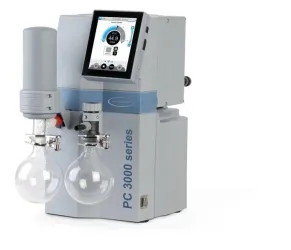 The PC 3004 VARIO select pumping unit precisely controls the vacuum level in order to achieve unparalleled process control. With its high pumping speed and deep ultimate vacuum, this pump is suitable for demanding applications with even high boiling point solvents. The integrated VACUU·SELECT controller provides an easy-to-use, application based interface that covers all common lab applications. The VACUU·SELECT controller has you covered. Use manual set-point-control for simple processes, run fully automated distillations, or create your own application with simple drag-and-drop editing. For solvent evaporation, the VACUU·SELECT controller continuously detects the boiling point and automatically adjusts the vacuum process as necessary. And the VARIO control algorithm maintains the desired vacuum level without running the motor faster than necessary. This prevents bumping and foaming, makes the pump whisper quiet, and extends maintenance intervals. The inlet separator, made of glass with a robust protective coating, prevents particles and liquid droplets from entering the pump, preventing damage and extending pump life. And the exhaust vapor condenser allows for nearly complete recovery of solvents when used with a chilled water line or recirculating chiller for economical recycling and environmental protection. Typical applications are all evaporation processes. They can be run fully automatically and with shorter process times and extra sensitivity even for challenging mixtures at the same time. The VARIO® control ensures high process reliability through prevention of boiling retardation or foaming. It detects boiling pressures automatically and self-adapts to changing process parameters at any time. This all without any need of parameter input or the use of a solvent library. Also in many other applications and in laboratory vacuum networks the VARIO® control brings significant advantages as it provides always the appropriate pumping speed. The VACUU·BUS® interface facilitates an user-friendly configuration of even complex vacuum installations.INCLUDED: The VACUUBRAND PC 3004 VARIO Select Chemistry Pumping Unit includes: