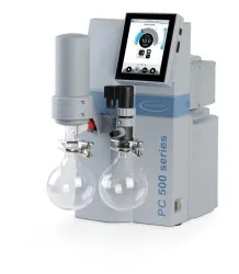Our PC 500-series chemistry pumping units of this series are an excellent choice for supporting electronically controlled evaporation or drying processes. Our popular MZ 2C NT two stage chemistry diaphragm pump is the heart of these pumping units, frequently used for medium-sized vacuum applications involving common solvents. The integrated VACUU·SELECT controller provides an easy-to-use, application based interface that covers all common lab applications. The VACUU·SELECT controller has you covered. Use manual set-point-control for simple processes, run distillations, or create your own application with simple drag-and-drop editing. For solvent evaporation, it detects the boiling pressure and switches to two point control to hold pressure steady when a boiling point is detected. The inlet separator, made of glass with a robust protective coating, prevents particles and liquid droplets from entering the pump, preventing damage and extending pump life. And the exhaust vapor condenser allows for nearly complete recovery of solvents when used with a chilled water line or recirculating chiller for economical recycling and environmental protection.INCLUDED: The VACUUBRAND PC 510 Select Chemistry Pumping Unit includes:
