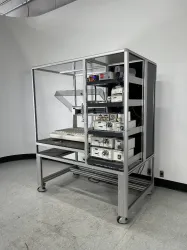The Gilson Lab Automation Workstation is a modular automated liquid handling system designed for advanced laboratory automation workflows. It integrates multiple Gilson syringe pump modules, valve modules, and control units on a robust stainless steel frame with mobility casters, facilitating flexible positioning in bioprocessing and molecular biology labs. This system supports precise and reproducible fluid handling critical for applications in molecular diagnostics, synthetic biology, and biomanufacturing pipelines.
