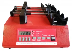 Syringe Size Maximum Rate Minimum Rate 0.5 µL 17.45 µL/hr 0.001 µL/hr 1 mL 36.19 mL/hr 0.452 µL/hr 3 mL 153.2 mL/hr 1.914 µL/hr 5 mL 255 mL/hr 3.185 µL/hr 10 mL 415.9 mL/hr 5.195 µL/hr 20 mL 661.4 mL/hr 8.26 µL/hr 30 mL 862.8 mL/hr 10.78 µL/hr 60 mL 1451 mL/hr 18.1 µL/hr 140 mL 2376 mL/hr 29.7 µL/hr
