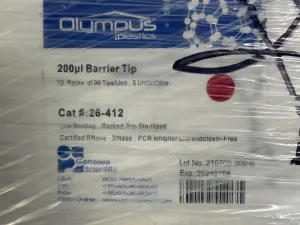 Olympus Plastic Barrier Pipette Tips are laboratory-grade consumables designed to ensure contamination-free sample handling during pipetting applications. Packaged securely in multiple sealed boxes on a pallet (approximate size 48 x 40 x 48 inches), these barrier tips are optimized for use in biotechnology, molecular diagnostics, and bioprocessing workflows requiring high sample integrity.