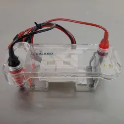 Biorad MINI-SUB CELL GT electrophoresis cuvette. Includes cover and power cables, 1 gel tray, 1 limiter for the formation of gels and 2 combs of 8 and 15 wells, respectively. User manual.
