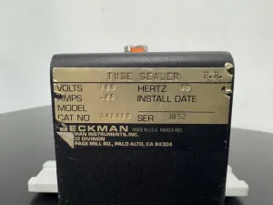The Beckman Coulter Tube Sealer Model 342420 is a compact, manually operated laboratory instrument designed for precise and reliable sealing of tubes. Featuring an adjustable temperature control knob, this device allows fine-tuning of the sealing temperature to accommodate various tube materials and diameters, which is essential for maintaining sample integrity in molecular diagnostics and bioprocessing workflows.