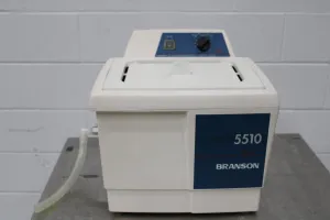 The Branson Ultrasonic Cleaner Model 5510R-MTH is a laboratory-grade ultrasonic cleaning system designed for precise and efficient cleaning tasks essential in biotechnology, molecular diagnostics, and biomedical research. Featuring a 13-liter capacity, this ultrasonic bath supports an input voltage of 117 V and operates effectively across 50Hz to 60Hz frequencies, accommodating various laboratory power standards.