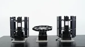 This offering includes three used Thermo laboratory sample carousels, essential components for automated sample handling and management in various research and industrial laboratory settings. These carousels serve as rotary sample holders, compatible with incubators or analyzers requiring organized sample positioning and temperature-controlled environments.