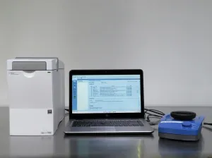 The Agilent 2100 Bioanalyzer G2938C is a microfluidics-based instrument integrating sample handling, separation, detection, and data analysis. It enables prompt and precise sizing, quantification, and quality control of biomolecules.