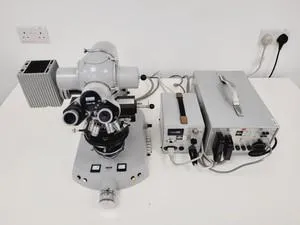THis was removed from a university lab where it was surplus to requirements. The unit powers up but none of the objectives are particularly clear, and two don't show an image at all (detailed below). The unit is quite stiff and awkward to use. For these reasons it is sold for spares/repairs. It is in reasonable good cosmetic condition with minor marks.