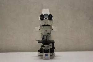 The Carl Zeiss Axioskop 20 is a professional-grade trinocular fluorescence microscope designed for exceptional research. With high-quality Carl Zeiss optics, it offers detailed visualization through Plan-Neofluar and Achroplan objectives. The microscope provides precise focusing with coaxial control knobs and versatility through its five-way nosepiece and 6V Halogen illuminator.