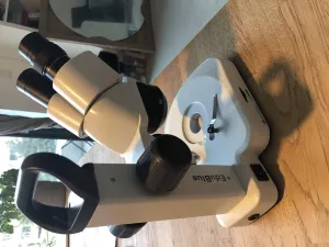 The Euromex EduBlue Binocular Stereo Microscope is a pre-owned system, offered without a power supply, which can be purchased separately online. This microscope is well-suited for educational settings, combining functionality with digital integration. It comes equipped with two wide-angle WF 10x/20 eyepieces, complete with eyecups, and includes a diopter adjustment on one of the eyepiece tubes to cater to individual visual needs. The binocular design features an adjustable interpupillary distance ranging from 55 to 75 mm, while the eyepiece tubes are inclined at a comfortable 45 degrees.