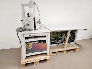 This FEI XL30 ESEM Scanning Electron Microscope System, removed from a university laboratory, is offered as is for spares or repair. It is in reasonable condition but with a known issue in the vacuum system: while the rotary backing pumps are operational, the turbo pump starts but trips before reaching high vacuum. Due to its age, lens and electronic degradation are also likely concerns. The package includes cables and wires, an XL30 Hot Stage Bias Supply Assembly, a Power Supply Box, a High Temperature BIAS Controller (which powers on, lights illuminate but displays are unresponsive likely due to connection issues), and a High Temperature Stage Controller (which powers on and operates with functional lights and displays). Additionally, it comes with 3x 1000ºC Heating Stage TMP, Philips Manual User Interface, a flow controller, various XL30 manuals, FEG Module Replacement Software version 1, and 2x Edwards RV8 Pumps.