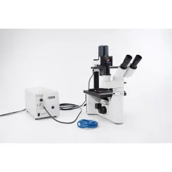 The Leica DMIL LED Fluorescence Microscope is an advanced inverted fluorescence microscopy system designed for high-resolution imaging in cell biology and biotechnology research. Equipped with objective magnifications of 20x, 63x, and 100x, this microscope provides detailed visualization essential for live-cell imaging and fluorescence analysis. The system integrates the X-Cite XTC200 200W illumination unit, ensuring stable and bright excitation light optimized for fluorophores like DAPI, supporting diverse fluorescence applications.