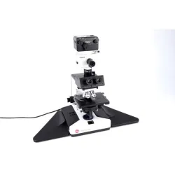 This Leica Diaplan Trinocular Polarizing Microscope is thoroughly tested and fully operational, ready for immediate use. It offers a range of magnifications, including 1.6x, 10x, 25x, 40x, and 100x, making it ideal for detailed research and examination tasks.