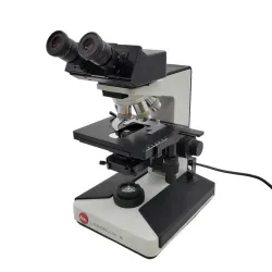 The Leitz Laborlux S is a high-precision biological microscope designed for detailed pathological examination and Mohs surgery workflows. Equipped with a stable Laborlux S stand and a binocular head fitted with paired Periplan 10x eyepieces, this model supports ergonomic use during extended sessions.