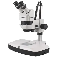 Equipped with powerful 3W LED illumination for both incident and transmitted lighting, the K-400 provides bright, clear images with intensity control to suit different lighting needs. The microscope also offers the option to add darkfield and polarization techniques, expanding its functionality. The coarse focusing system with tension adjustment and a focusing stroke of 49mm ensures smooth operation. Complete with essential accessories, including black/white and frosted stage plates and a blue filter, the Motic K-400 LED Stereo Microscope is a reliable and adaptable solution for demanding laboratory environments.