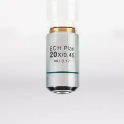 The MOTIC EC-H PL 20X/0.45 is a precision plan achromatic microscope objective crafted for the BA410E series microscopes. Featuring an infinity-corrected CCIS® optical system, this objective provides 20X magnification combined with a numerical aperture (N.A.) of 0.45, enabling high-resolution imaging with enhanced contrast. The working distance of 0.90 mm supports delicate sample manipulation, making it suitable for live-cell imaging, molecular diagnostics, and various biotechnology research applications.