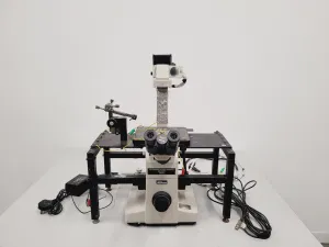 This Nikon Diaphot inverted microscope includes a Watec CCD Camera WAT-501 EX2 (Serial No. 00483) and associated components. It was removed from a university laboratory and is offered for spares or repair due to several issues: