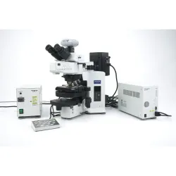 The Olympus BX61 is a high-performance automated fluorescence microscope designed for advanced cell imaging and fluorescence analysis applications. Equipped with Differential Interference Contrast (DIC) capabilities, it provides enhanced contrast for unstained, transparent specimens. The system includes a range of high-quality UplanApo objectives: 2x, 10x, 20x, 40x, and 60x, enabling versatile magnification options suitable for diverse biotechnology and molecular diagnostics workflows.
