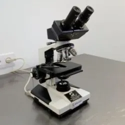 The Simtronics SE-105 is a refurbished binocular brightfield compound optical microscope designed for precise sample observation in educational, clinical, and industrial laboratory settings. Key features include: