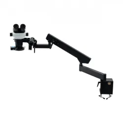 The Unitron Z645 stereo microscope features precision optics designed to provide sharp, distortion-free images across the entire field of view, suitable for research, inspection, and education. It supports a zoom range from 0.67x to 4.5x using standard 10x eyepieces, offering a total magnification range of 6.7x to 45x with defined click stops for repeatability.