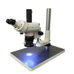 The microscope comes with a separately shipped boom stand, facilitating stable, extended reach positioning ideal for biomanufacturing quality control and neuroimaging sample setups. The optics are clean and clear, supporting high-contrast imaging needed in molecular cloning and synthetic biology research platforms.