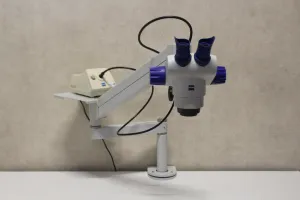 The Zeiss Stemi DV4 SPOT Stereomicroscope delivers unmatched visual clarity and precision with its high-quality optics. The binocular head provides comfortable viewing, while the 10x eyepieces and zoom range of 0.8x to 3.2x enable detailed observations. With a working distance of 92mm and total magnification ranging from 8x to 32x, this microscope is ideal for a wide array of applications. The integrated KL 200 illumination source ensures consistent lighting across the specimen field.