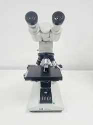 The Carl Zeiss Laboval 4 microscope is a high-quality optical instrument equipped with three objectives, perfect for precise analytical applications in laboratory settings. Originally sourced from a university lab, it remains surplus to their requirements. The unit is in excellent cosmetic condition, displaying only minor surface scratches. It ensures reliable operation with a fully functioning lamp and smooth, accurate mechanical motion. The optical clarity is exceptional with the following included objectives: Carl Zeiss 40/0.65 160/0.17 (Serial#: 059 082), Carl Zeiss 10/0.25 160/-A (Serial#: 027 168), and Zeiss F100/1,25 160/- (Serial#: 46 19 05). This microscope is ideal for biological and advanced research applications.