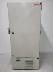 The Sanyo MDF-U5386S is an ultra-low temperature freezer designed for laboratory use, capable of maintaining temperatures as low as -86°C. Previously utilized in a university lab, this unit has been deemed surplus to requirements. It remains in excellent working condition and features a well-maintained exterior with only minor signs of wear. Boasting a generous 483-liter (17.1 cu ft) capacity, the freezer includes three adjustable shelves measuring 64 cm x 54 cm, providing flexible storage solutions for various research needs.
