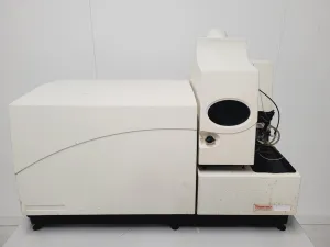 The Thermo Elemental X Series ICP-MS Mass Spectrometer, complemented with software and accessories, is a cutting-edge instrument originally used in a university lab setting. This unit is acknowledged to be in working condition when last used in 2020, though further testing at our facilities remains uncompleted. The equipment is in good cosmetic condition, showing only minor marks indicative of minimal use.