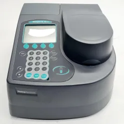 This Thermo Spectronic Genesys 10 VIS Spectrometer was acquired from a university lab, identified as surplus. It powers on and maintains a good cosmetic condition, although it has not undergone further testing. The device tracks a lamp usage of 1041.35 hours, providing a reliable choice for precise optical analysis in laboratory settings.