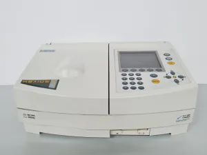 The Unicam Helios Alpha Spectrophotometer is a robust laboratory instrument designed to meet diverse analytical needs. Previously part of a university's equipment pool, it was decommissioned due to surplus. This unit remains in excellent cosmetic condition and successfully powers on, although further functional testing was not conducted at our facility. Please note a minor cosmetic issue: a small black line is present on the screen, but this should not impede overall functionality. The device has recorded 7725 operational hours, and its specifications include Type: Helios Alpha, NC: 9423 UVA 1002, and ES/N: UVA 081205. Ideal for laboratories seeking reliable performance in optical measurement and analysis.