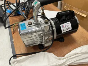 The Fischer LAV-3 High Vacuum Pump is engineered for reliable vacuum generation in laboratory and industrial settings, essential for applications in molecular diagnostics, bioprocessing, and synthetic biology workflows. This oil-sealed high vacuum pump operates with a single-phase, special service duty motor rated at 115 V, 60 Hz, 2.7 A, and 1/6 HP. The motor features Class B insulation and is thermally protected, ensuring durability and consistent performance in continuous or intermittent operation.