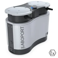 The KNF Laboport N 840 G is a diaphragm vacuum pump expertly engineered to handle chemical and corrosive liquids, providing a compact, oil-free solution for various laboratory applications. Equipped with gas ballast, PTFE/TFM heads, PTFE-lined diaphragms, and FFPM valves, this pump is highly resistant to aggressive gases and vapours. The flow rate is 34 l/min, with a final vacuum capacity of 6 mbar, and manual speed adjustment for precision operations. ATEX compliance ensures safe use within designated internal atmospheres, (Ex) II 2/-G IIB+H2 T3. Its clean, oil-free operation, small footprint, and low maintenance make it a reliable choice for procedures like degassing, drying, and distillation. For further customization, adjustable speed control provides flexibility across a range of applications.