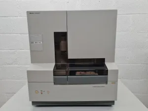 The Applied Biosystems 3130xl Genetic Analyzer, previously utilized in a university lab, is now available due to surplus. While the unit powers on, it has not undergone further testing. It maintains good cosmetic condition with only minor signs of use, making it a reliable choice for high-throughput DNA sequencing and fragment analysis applications.