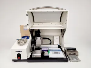 The Applied Biosystems QuantStudio 12K Flex Accufill System is a high-capacity PCR system designed for precision in nucleic acid analysis. Previously used in a university lab, it was deemed surplus to requirements and was retained in excellent cosmetic condition, despite minor signs of use. Although it powers up, further testing hasn't been conducted at our facility, yet the lab verified its operational status prior to storage.