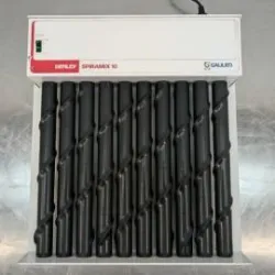 The Denley Spiramix 10 Roller Agitator, with its sophisticated rocking action, is designed for optimal mixing of liquid-solid suspensions with minimal aeration. It features ten rubber-coated rollers, each 30mm in diameter and 310mm in length, ensuring thorough mixing. Operating at a speed of 50 rpm, this agitator offers a highly efficient rocking and rolling motion. The overall dimensions are 460mm x 409mm x 100mm in height. This roller shaker stands out in laboratory environments, particularly within research, pharmaceutical, and chemical settings, thanks to its robust build and non-slip roller platform. It guarantees accurate and repeatable results, making it an indispensable tool for your experimental and mixing needs.