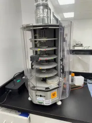 The Genial Genetics Carousel is a laboratory automation instrument designed to streamline sample processing workflows in molecular biology and biotechnology research. This benchtop system features a multi-plate rotating carousel with 7 plates, enabling parallel and efficient handling of multiple samples simultaneously. Its transparent protective enclosure allows clear visual monitoring while safeguarding samples, making it suitable for applications requiring contamination control such as molecular diagnostics, gene editing, and bioprocessing. The compact footprint supports integration into crowded laboratory spaces. Although voltage and power specs are not specified, the device is engineered for consistent automated operation in synthetic biology labs and is critical in sample preparation workflows essential for biopharmaceutical production pipelines. This instrument is widely valued among researchers for its reliable automation of routine sample handling, enhancing reproducibility in cell imaging and biotechnology applications.