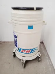 The GT 55 Liquid Nitrogen Dewar, equipped with 6 storage racks, is ideal for secure cryogenic sample preservation. Originally part of a university laboratory's inventory, this unit was deemed surplus, thus is available now. While exhibiting typical cosmetic wear from use, it remains structurally intact though untested. Its organized system includes racks with drawers designed to accommodate 5ml tubes effectively.