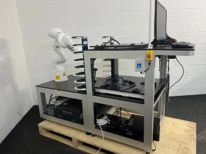 This system enables precise labware handling, automated orientation, barcode scanning, and efficient storage management to enhance throughput in laboratory automation workflows.