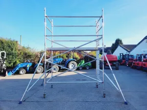 The Lewis Aluminium Scaffold Tower is designed to offer a robust and reliable working platform in laboratories and similar environments requiring elevated access. This double-width scaffold provides exceptional stability and support, featuring stabilising outriggers and adjustable braked castors that enhance safety during use. The tower's construction is comprised of 50.8mm diameter aluminium tubing with a 1.8mm wall thickness, supporting a safe working load of 275kg per platform and up to 950kg in total, including the self-weight.