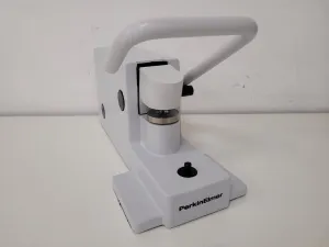 The Perkin Elmer Universal Crimper Press Lab is a reliable piece of laboratory equipment, initially sourced from a university as surplus. It remains in excellent cosmetic condition while maintaining optimal mechanical functionality, making it an ideal choice for precise sample preparation and crimping applications in research settings.