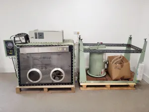 The VAC HE-63-P PEDATROL GloveBox, originally acquired from a university due to surplus, is in reasonably good cosmetic condition. This unit, however, is being sold as spares/repairs because it lacks a back panel, leaving wires exposed and preventing functional tests. The package includes machine components, tubing, pipes, and an automatic dewpoint meter. Ideal for professionals needing parts or repairs for similar equipment.