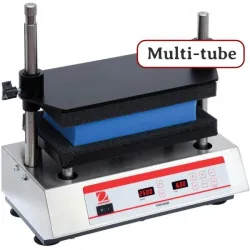 Ohaus's VXMTDG multi-tube vortex shakers are specifically designed for efficiently processing large volumes of samples. These shakers come with interchangeable foam racks, suitable for tubes with diameters ranging from 10 to 29 mm. The device's powerful suction cup feet ensure stability and safety during operation by minimizing movement and preventing slippage on your workspace.