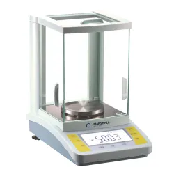 The MARSHALL Select MS-BS120 Electronic Balance is designed for precision weighing, offering a maximum capacity of 120g and a readability of 0.001g. Its performance is enhanced by a new-generation electromagnetic balance weighing sensor, ensuring high accuracy and repeatability with a standard deviation of just 0.001g. This balance features a pan size of 3.1 in. (80 mm) in diameter and boasts a rapid stabilization time of just 1 second, making it ideal for fast-paced laboratory environments. The MS-BS120 is equipped with an ultra-large LCD display, providing a clear and comfortable viewing experience for users. Its humanized design includes a novel, five-sided, full-transparent windshield that protects the weighing area while maintaining visibility. The balance also includes a built-in lower weighing hook for added convenience in handling various weighing tasks.