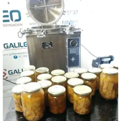 Food Autoclave LS-LD. Counter pressure autoclave for food sterilization with water fast cooling function, external compressor and inner printer. Valid for canned food or jars. Capacity: LS-75LD (75 L) and LS-150LD (150 L). Max temperature 134℃, max pressure 2.2 bar. Includes two baskets.